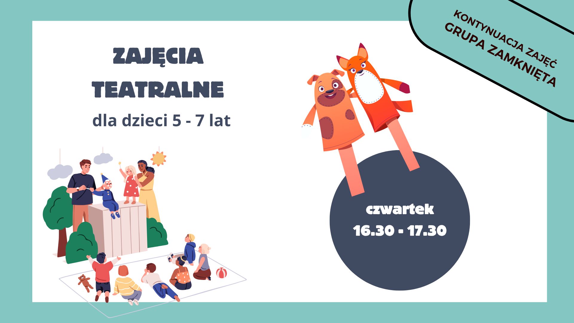 Poznamy różne formy teatru – od lalek po teatr cieni – a sezon zakończymy pokazem stworzonym wspólnie przez uczestników.