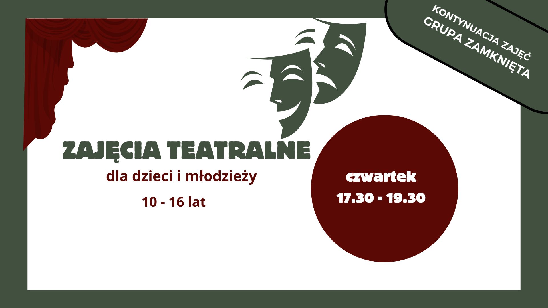 Prowadzi Aleksandra Samorajska – animatorka działań teatralnych z doświadczeniem w pracy z młodzieżą.