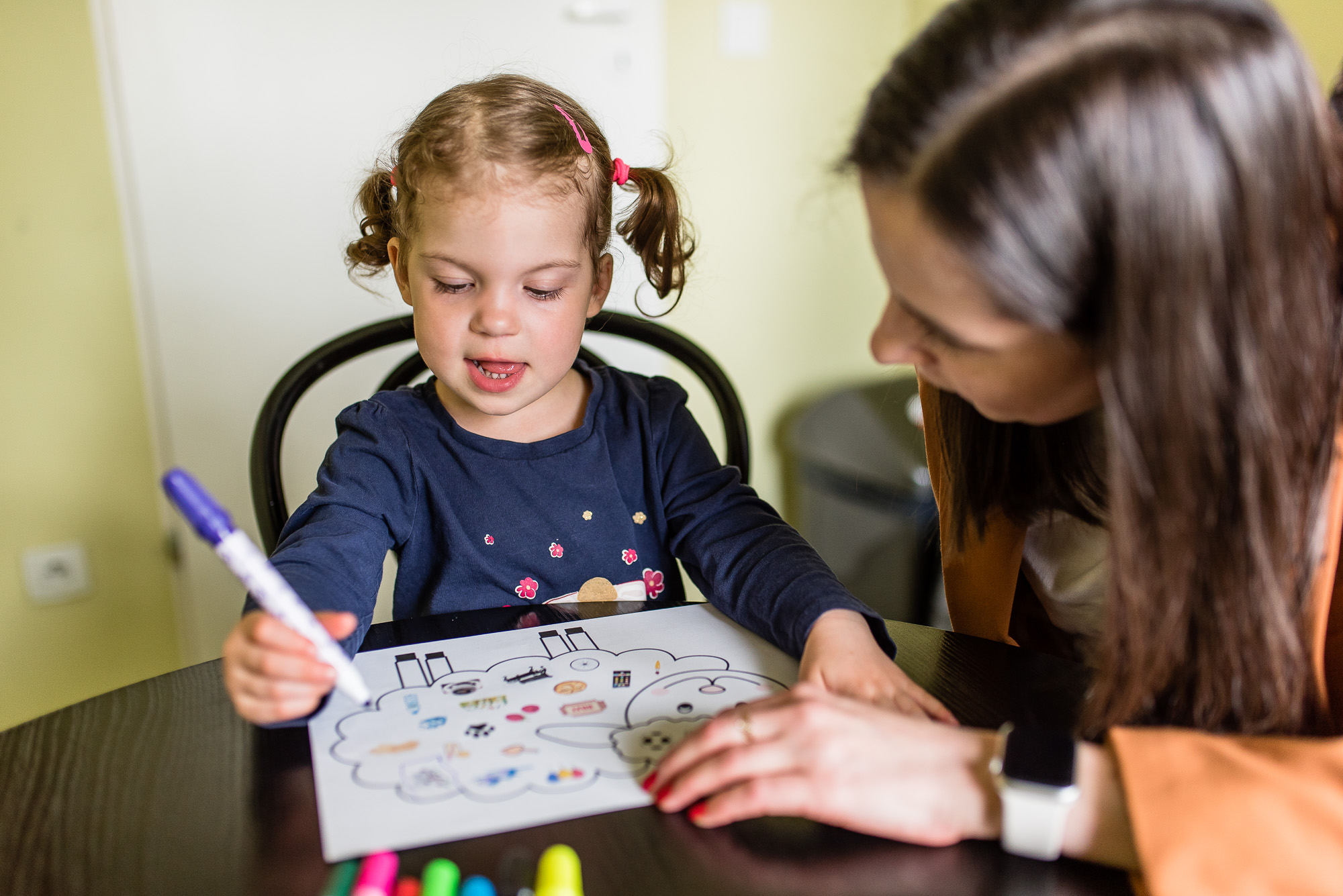 Indywidualne zajęcia logopedyczne dla dzieci od lat 4. W ramach zajęć przeprowadzana jest diagnoza, która obejmuje badanie artykulacji dziecka a także wywiad z rodzicem. Pozwala to na odpowiednie dostosowanie zajęć do konkretnych potrzeb, oraz pozwala aby w ramach zajęć ćwiczone były u uczestnika odpowiednie funkcje. Zajęcia prowadzone są w formie gier i zabaw. Celem terapii logopedycznej jest korygowanie zaburzeń i wad wymowy, które w różnym stopniu utrudniają osiąganie sukcesów szkolnych, czy nawet zawodowych. Zajęcia logopedyczne prowadzone są indywidualnie. Terapia logopedyczna może czasem przypominać zabawę z dzieckiem, szczególnie w trakcie stymulowania rozwoju mowy przy jego opóźnieniu (2- 4 rok życia). Terapeuta dokłada wszelkich starań, aby dziecko chętnie wykonywało proponowane zadania, było zainteresowane, a nie znudzone, czy zniechęcone propozycjami. Terapię rozpoczyna diagnoza problemu logopedycznego, w wyniku której logopeda opracowuje indywidualny programu pracy dla każdego dziecka. W programie odpowiednio dobiera ćwiczenia oddechowe, artykulacyjne, ortofoniczne i inne mające na celu wzmocnienie aparatu mowy, a w rezultacie redukcję wady wymowy, poprawę umiejętności wypowiadania się i prawidłowej budowy wypowiedzi. W czasie zajęć prowadzona jest wczesna, sylabowa nauka czytania, oraz terapia ręki. W zajęciach mogą uczestniczyć zarówno dzieci zdrowe, jak i posiadające orzeczenia do kształcenia specjalnego. Terapia logopedyczna może obejmować dzieci i młodzież z Ukrainy przebywających w naszym kraju i pragnących poprawić jakość mowy języka polskiego, czy poszerzyć zasób słów.
