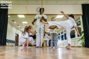 Zajęcia capoeiry skierowane są do dzieci w wieku od 4 do 10 lat i odbywają się w dwóch grupach wiekowych. Capoeira, brazylijska sztuka walki łącząca taniec, muzykę i akrobatykę, rozwija koordynację, sprawność fizyczną oraz poczucie rytmu. Program zajęć opiera się na metodyce Gingando Sempre, która kładzie nacisk na systematyczność, kontynuację tematów oraz dostosowanie treści do wieku i możliwości uczestników. Cena uczestnictwa wynosi 115 zł miesięcznie.