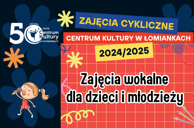 Centrum Kultury w Łomiankach zastrzega sobie prawo do zmiany oferty zajęć i warsztatów organizowanych przez Centrum Kultury w Łomiankach w sezonie zajeciowym 2025/2026.