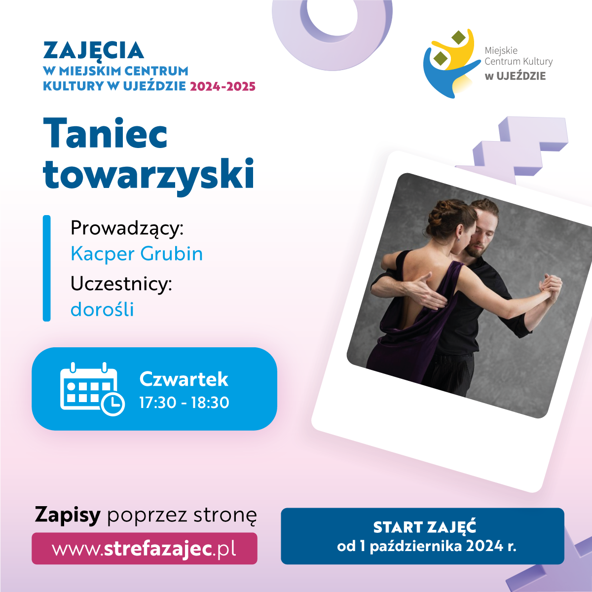 Pary mile widziane! Koszt miesięczny uczestnictwa w zajęciach - 60 zł/ msc - z Kartą Mieszkańca, 90 zł/ msc - bez Karty Mieszkańca. Obowiązują płatności z góry za dany miesiąc.
