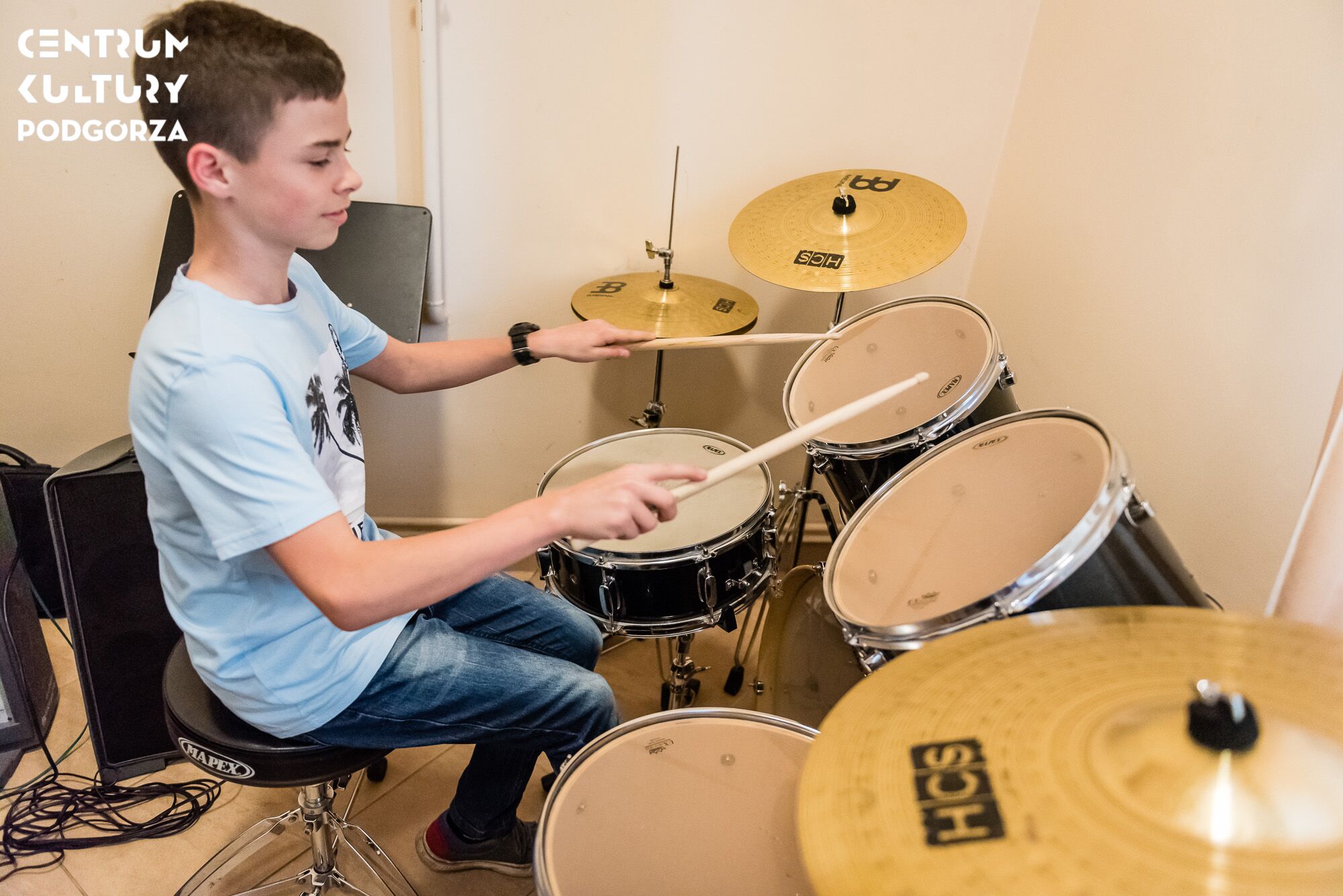 Zajęcia indywidualne z perkusji skierowane są do wszystkich osób bez względu na wiek i poziom zaawansowania. Zagadnienia poruszane w trakcie nauki to: podstawowe techniki gry rąk i nóg, koordynacja na zestawie perkusyjnym, style muzyczne, nauka czytania nut, ćwiczenia słuchowe, praca z sekcją rytmiczną.