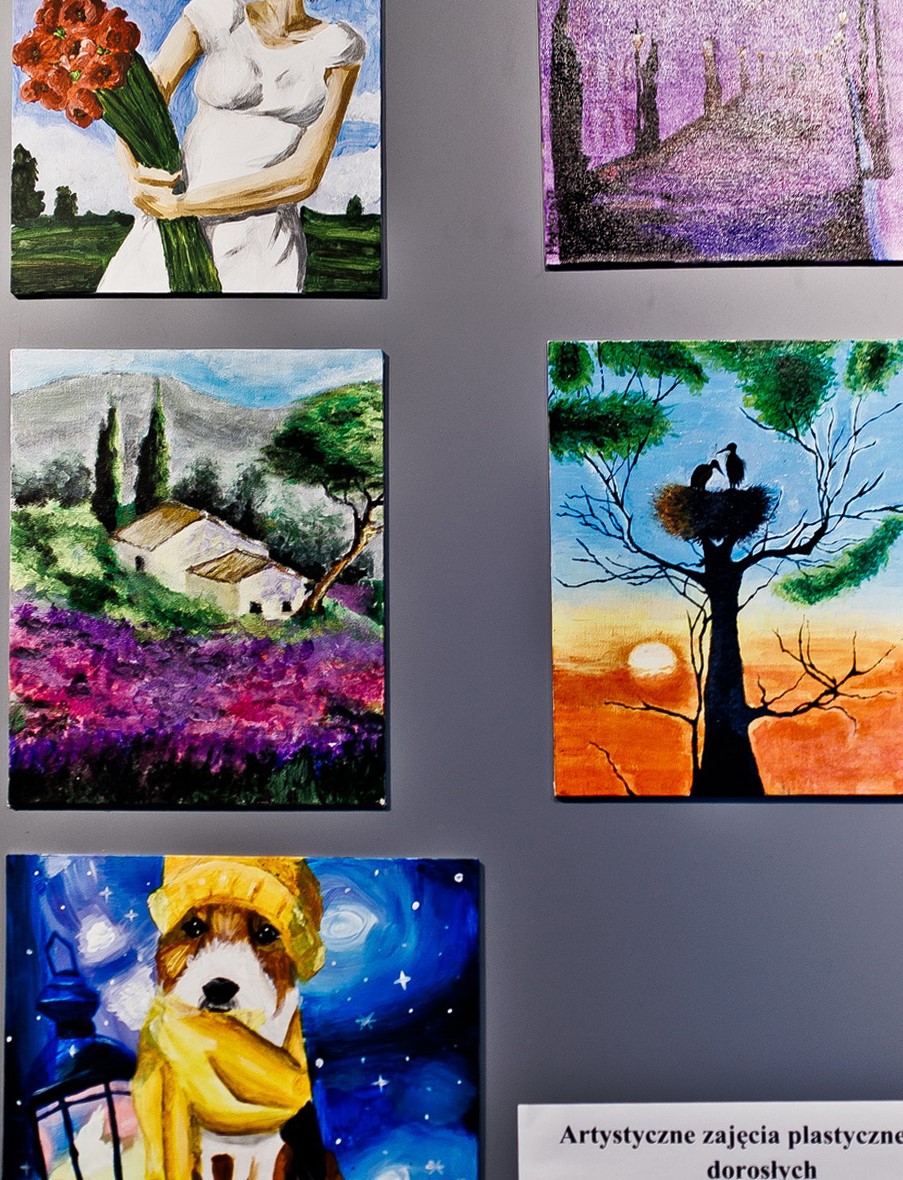 Zajęcia polegają na rozwijaniu zdolności plastycznych z wykorzystaniem wielu technik : malarstwo olejne, akwarela, rysunek, grafika, pastele. Udział w zajęciach pozwoli , zrelaksować się , pozbyć się napięć i poszerzyć pozytywną strefę emocjonalną.