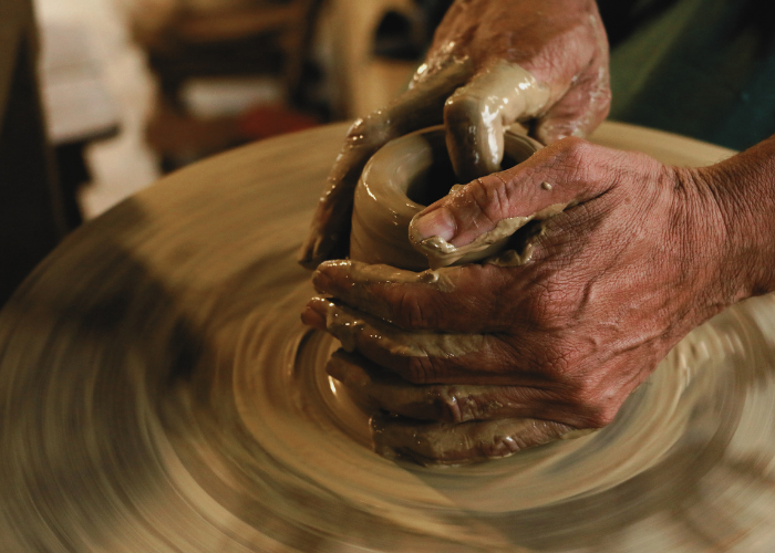 Ceramika od podstaw - na zajęciach uczestnicy poznają naukę modelowania ręcznego gliny (np. z kuli, z wałków, z plastra), modelowania na formach gipsowych i naukę podstawowych metod i sposobów szkliwienia. Poznamy też różne zastosowanie angob: wydrapywanie techniką sgraffito, monotypia, stemplowanie lub użycie szablonów. Na zajęciach używamy szkliw przeznaczonych do żywności - duży wybór szkliw farbek i angob. Oprócz tego duży wybór kolorowych glin z szamotem.